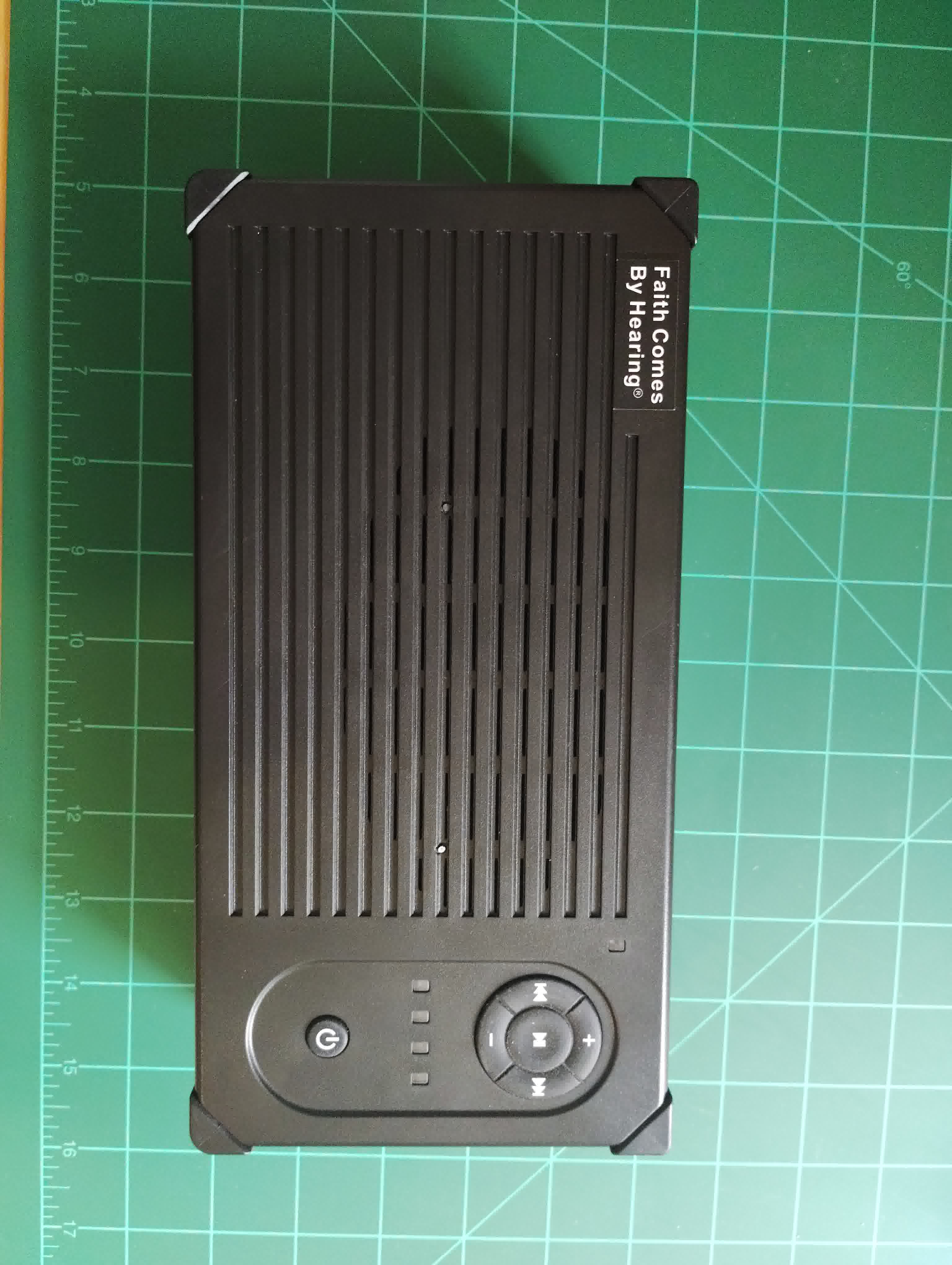 Recently I went to a thrift store and found an interesting device. It's called the "Proclaimer®" from a company called "Faith Comes by Hearing®". The device stood out to me because it has: